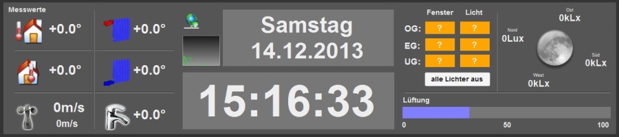 Temperatur Aussen | Unter der Zusammenfassung von Fenster- und Lichterstatus befindet sich ein Schalter um alle Lichter mit einem Knopf auszuschalten | |